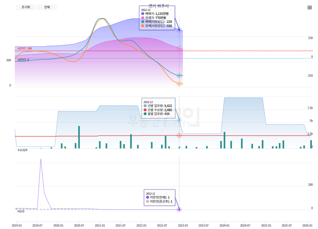 파주는 데이터만 보면 투자하는 사람들에게 매력적인 지역이라고 평가된다. 아니, 정정하겠다. 현금을 보유한 투자자라면 분명 매력적이다. 위에 데이터를 보는 것처럼 신규 입주 물량이 대기를 하고 있는 상황이라 갭투자를 하는 투자자에게는 진입 장벽이 있을 것으로 예상되며, 하지만 나도 현금을 보유하고 있다면, 분명 열심히 찾아보고 투자해볼만한 지역이라고 생각한다.