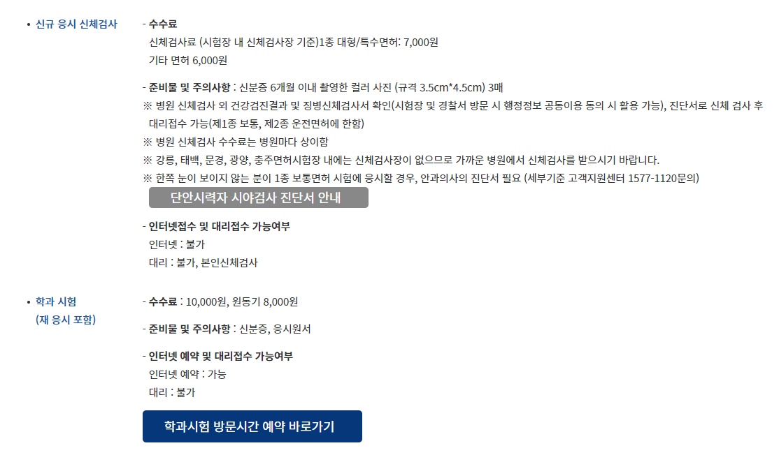 여기서 학과 시험이 바로 필기 시험인데, 필기 시험까지는 안전 교육, 신체검사 정도만 필요하므로,